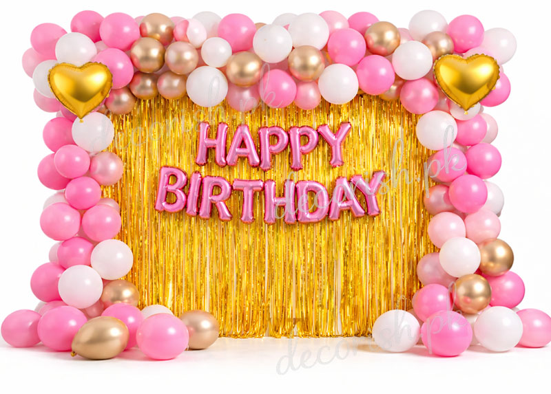 Pink, White and Golden Happy Birthday Decoration Set