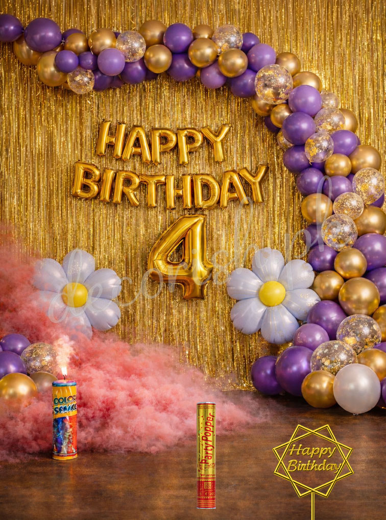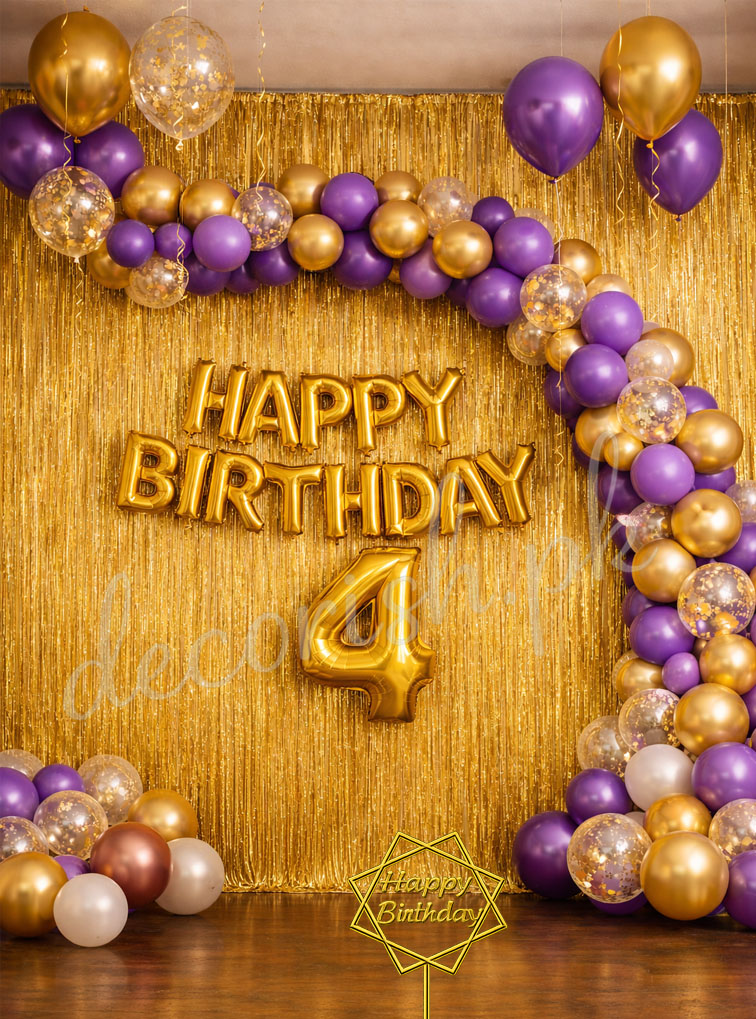 Purple, Golden and Confetti Balloons - Happy Birthday Decoration Set
