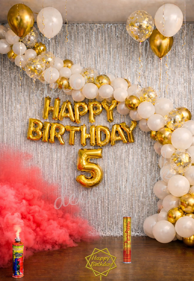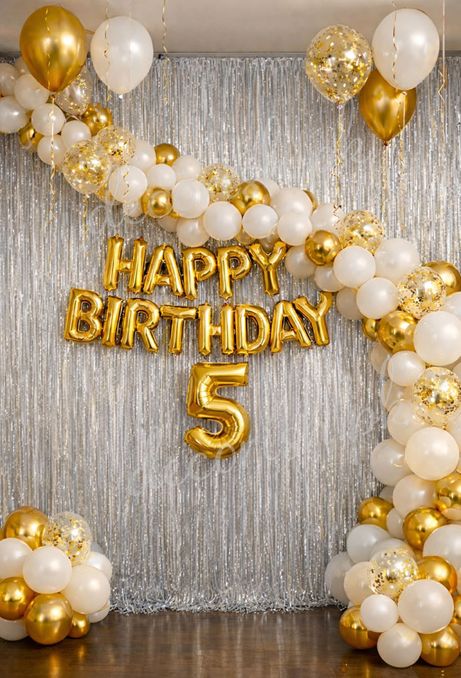 White, Golden and Confetti Balloons - Happy Birthday Decoration Set